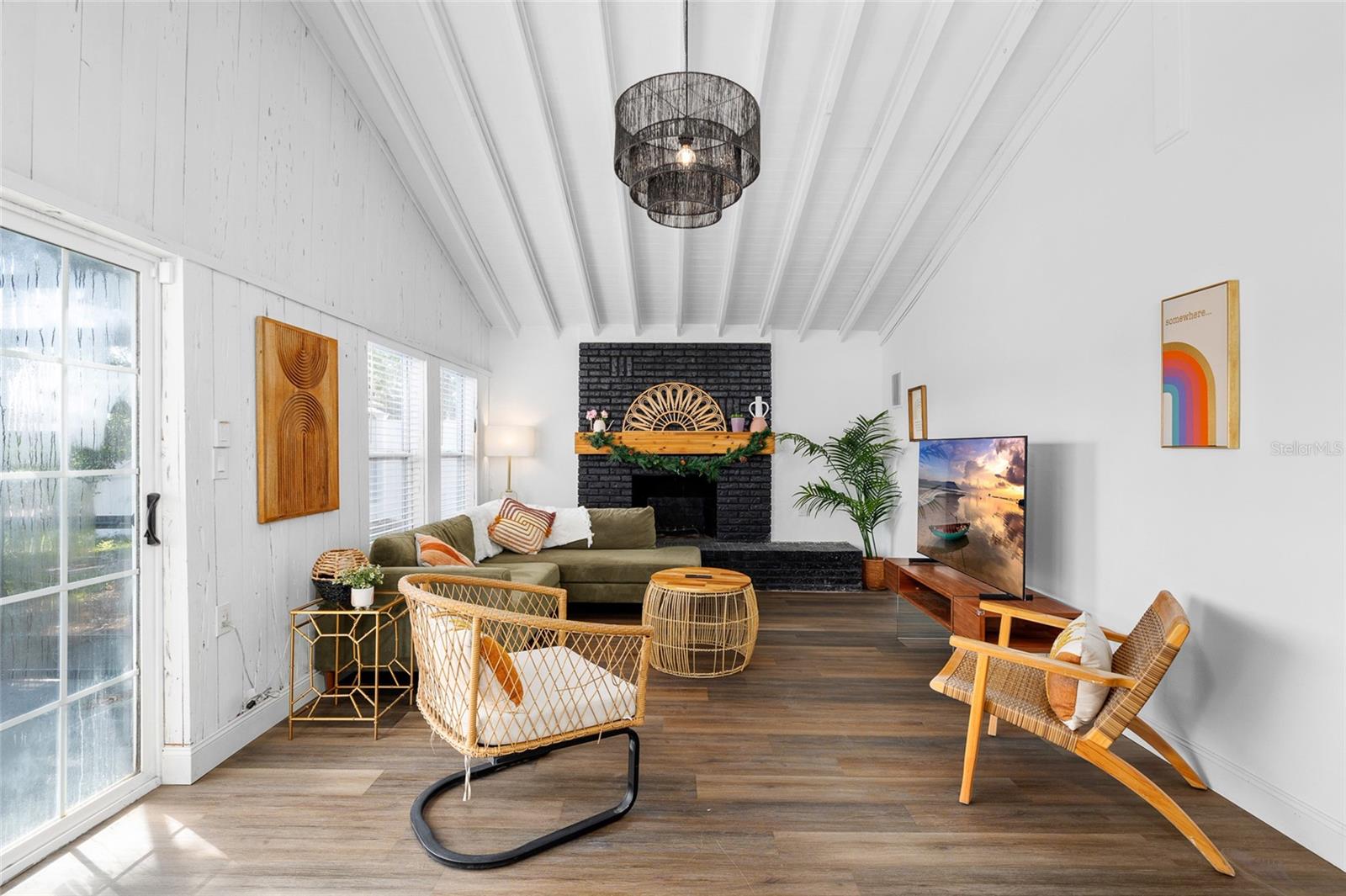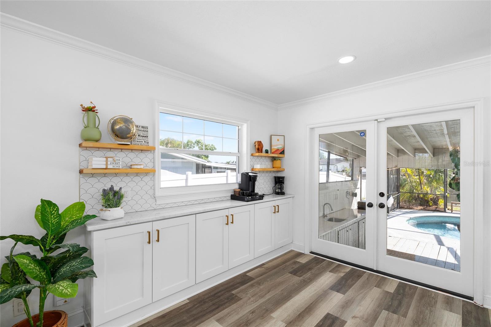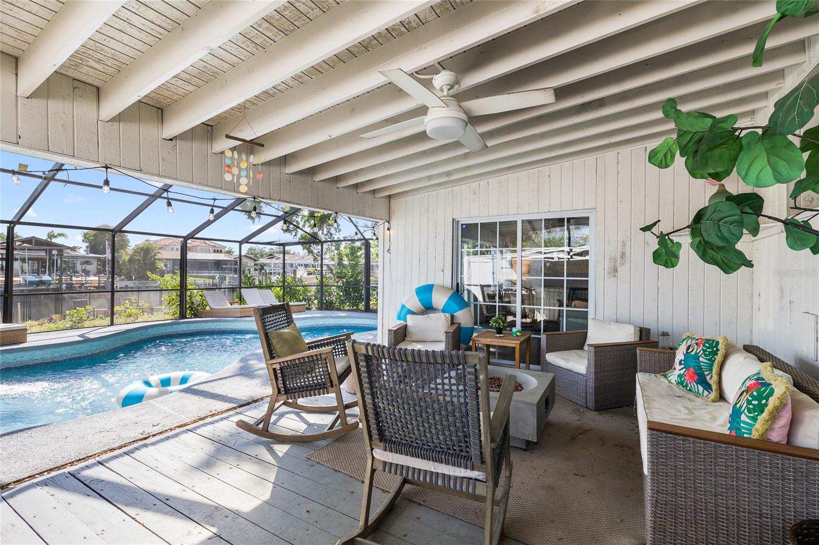 Step inside this turnkey oasis, where modern comfort meets effortless style. This stunning home boasts high end contemporary fixtures and trendy designer finishes, offering a perfect balance of modern sophistication and warm, inviting charm. The gourmet kitchen boasts top-of-the-line appliances, chic brass hardware, pot filler, large island and marble countertops. The expansive windows and French doors open seamlessly to the poolside retreat, bringing in natural light and enhancing the home's airy feel, ideal for both entertaining and everyday relaxation. In the living area, soaring cathedral ceilings and wall-to-wall windows provide a stunning backdrop, complemented by a cozy wood-burning fireplace. Sliding glass doors lead outside, ensuring a smooth transition between indoor and outdoor spaces. This floor also features an additional seating area, bedroom and a stunning full bathroom designed to impress. Ascend to the third floor, where you’ll find two beautifully appointed guest bedrooms and a stylish guest bathroom, along with the serene master suite. Indulge in a spa-like experience in the luxurious en-suite bath, featuring dual sinks, a sleek walk-in shower, and designer finishes. Outside your private oasis awaits! Screened in lanai with an outdoor wet bar and plenty of seating room for outdoor entertainment. Soak in the canal view with direct access to the bay. Whether you're searching for your dream home, a luxurious vacation retreat, or a savvy investment opportunity, this stunning property offers it all! With short-term rentals allowed, you can maximize its potential as a lucrative rental or enjoy it as your own private getaway. Don’t miss the chance to own a piece of paradise!